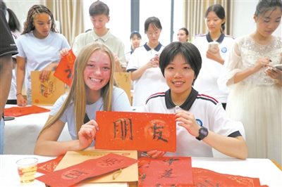 近日,由美國(guó)7個(gè)州14所中學(xué)近190名師生組成的美國(guó)青少年“青春同行”交流團(tuán)訪華。在福州,美國(guó)學(xué)生與中國(guó)同齡人交流互動(dòng),歡聲笑語(yǔ)中,友誼的種子也在中美兩國(guó)青少年的心田里種下。寧麗萍 攝