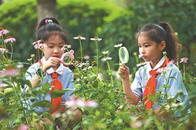 7月15日,江蘇省徐州市鼓樓生態(tài)園小學(xué)開展“七彩的夏日·探索生物奧秘”暑期活動(dòng),組織學(xué)生到當(dāng)?shù)卦讫埡L(fēng)景名勝區(qū)觀察各類生物,培養(yǎng)孩子們對(duì)自然科學(xué)的興趣,讓孩子們樂享暑假。蒯創(chuàng) 攝