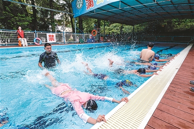 近日,浙江省湖州市吳興區(qū)城南實(shí)驗(yàn)學(xué)校暑期愛心公益游泳班開班。為游泳班提供公益指導(dǎo)的湖州剛強(qiáng)志愿服務(wù)隊(duì)至今已連續(xù)12年組織開辦暑期愛心公益游泳班,累計(jì)培訓(xùn)近千名學(xué)生學(xué)習(xí)游泳、急救知識(shí)和防溺水知識(shí)。圖為7月25日游泳班的學(xué)生們在練習(xí)游泳。新華社記者 徐昱 攝