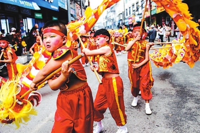 ④湖南省湘西州瀘溪縣浦市第一幼兒園孩子在舞龍。