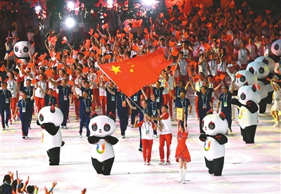 ②2023年7月,第31屆世界大學(xué)生夏季運動會在四川省成都市開幕,來自113個國家和地區(qū)的大學(xué)生體育代表團相繼入場。