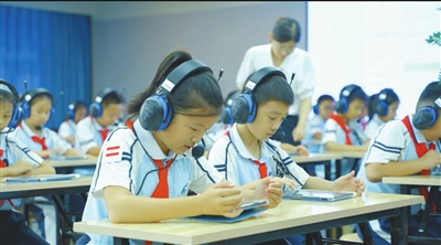 ③??谑袨I海第九小學(xué)美麗沙分校學(xué)生在利用國家智慧教育平臺上課。