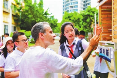 ⑤??谑形逶春訉W(xué)校學(xué)生向聯(lián)合國教科文組織專家展示研究項(xiàng)目。
