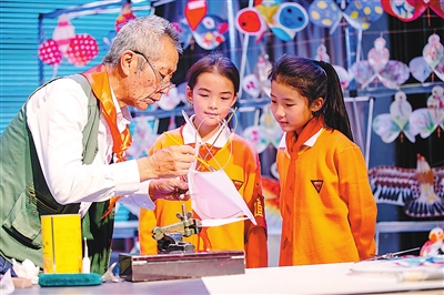 ④滇派風箏傳承人給學生講授風箏制作技藝。