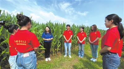 ①吉林大學(xué)生態(tài)主題夏令營營員學(xué)生在聆聽思政課教師講述“梨樹模式”在保護(hù)黑土地方面的作用機(jī)理和推廣應(yīng)用。