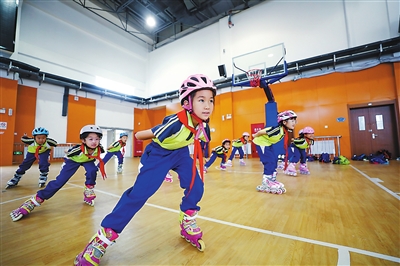 ②長春新區(qū)北湖英才學(xué)校學(xué)生在參加輪滑訓(xùn)練。