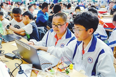 ④長春汽車經(jīng)濟(jì)技術(shù)開發(fā)區(qū)第二實(shí)驗(yàn)學(xué)校學(xué)生在參加中小學(xué)人工智能綜合實(shí)踐活動(dòng)。