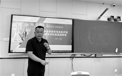 圖:程波在化學教學研討會上分享經(jīng)驗。 資料圖片