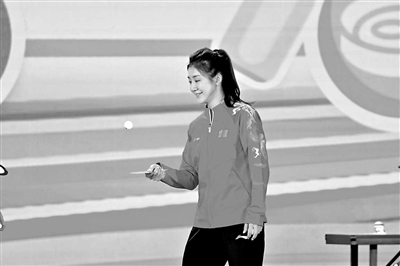 ③奧運(yùn)冠軍孫穎莎跟學(xué)生一起打乒乓球。 尹碩 攝