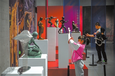 10月6日,一名小朋友在呼和浩特雕塑藝術(shù)館參觀。新華社記者 連振 攝