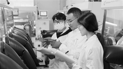 南京大學現(xiàn)代工程與應用科學學院教授譚海仁(中)指導學生開展科研工作。 南京大學 供圖
