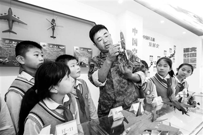 10月18日,在安徽省合肥市廬陽(yáng)區(qū)海棠街道國(guó)防知識(shí)科普館,廬陽(yáng)區(qū)實(shí)驗(yàn)小學(xué)學(xué)生在學(xué)習(xí)國(guó)防知識(shí)。當(dāng)日,海棠街道武裝部聯(lián)合轄區(qū)小學(xué)開(kāi)展“青春如火,國(guó)防有我”主題教育活動(dòng),通過(guò)介紹武器裝備模型、開(kāi)展國(guó)防知識(shí)講座等形式,增強(qiáng)青少年國(guó)防意識(shí)和愛(ài)國(guó)熱情。