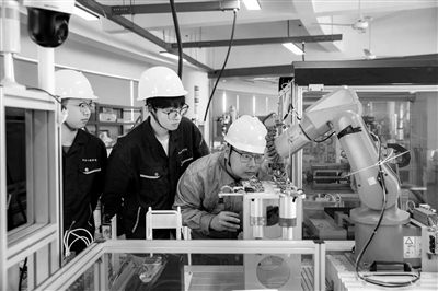 下圖:智能制造學(xué)院學(xué)生在實(shí)訓(xùn)中心開展技能訓(xùn)練。學(xué)校供圖