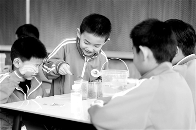 近日,河北省邢臺(tái)市內(nèi)丘縣平安小學(xué)組織學(xué)生開(kāi)展科技農(nóng)業(yè)研學(xué)活動(dòng),通過(guò)制作生態(tài)瓶等,培養(yǎng)學(xué)生們的動(dòng)手能力,激發(fā)其科學(xué)探索興趣。圖為學(xué)生們?cè)谘袑W(xué)課堂中學(xué)習(xí)檢測(cè)土壤酸堿度。劉繼東 攝