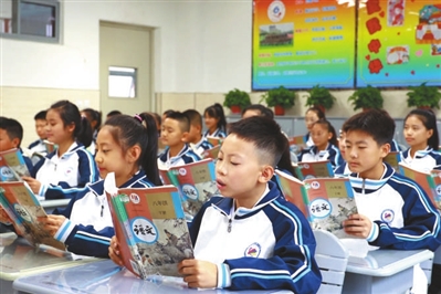 陜西省延安市新區(qū)第一中學(xué)學(xué)生在課堂上朗讀課文《回延安》。本報(bào)記者 馮子琪 攝