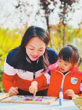 作為園長(zhǎng),她堅(jiān)持每天進(jìn)班與豆豆交流互動(dòng),和班級(jí)教師一起營(yíng)造“我們是親親密密一家人”的班級(jí)氛圍,引導(dǎo)全班幼兒關(guān)愛、幫助豆豆。