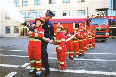 11月5日,江蘇省連云港市連云區(qū)墟溝街道西園社區(qū)聯(lián)合當(dāng)?shù)叵谰仍箨?duì)、揚(yáng)帆幼兒園,開(kāi)展“萌娃學(xué)消防 安全潤(rùn)童心”119全國(guó)消防安全宣傳教育活動(dòng),讓小朋友零距離感受消防員風(fēng)采,學(xué)習(xí)消防安全知識(shí)。朱華南 攝