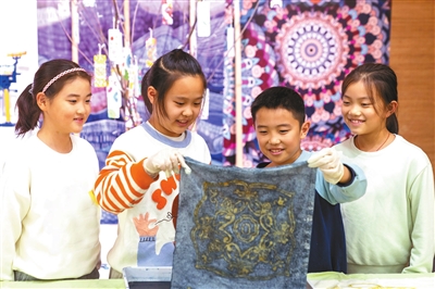 近日,江蘇省海安市城南實(shí)驗(yàn)小學(xué)學(xué)生在教師指導(dǎo)下,進(jìn)行非遺楓香染創(chuàng)作。學(xué)校專門(mén)設(shè)立“紋樣密碼工作坊”,精選多種非遺紋樣,讓學(xué)生們?cè)趧?chuàng)作實(shí)踐中了解綺麗多彩的民間藝術(shù),感受中華優(yōu)秀傳統(tǒng)文化的魅力。翟偉凱 攝