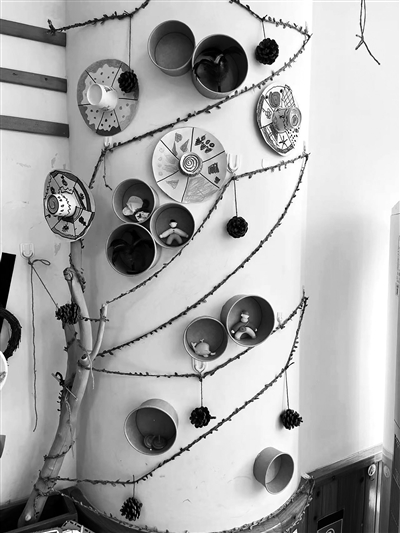 活動過程:根據(jù)班級的整體風(fēng)格、季節(jié)特點、幼兒審美和興趣等,我們決定一起打造一片“小森林”,森林里有各種有趣的小動物,大樹上有著獨一無二的樹葉和神秘的樹洞,幼兒可以把自己的喜怒哀樂都分享給樹洞爺爺聽。如果幼兒不想把秘密告訴其他人,可以單獨告訴樹洞爺爺,如果想分享,也可以掛在樹枝上展示。幼兒可以在需要答疑解惑的秘密上做記號,教師會讀取信件并作出回應(yīng),幫助幼兒解決難題。我們班的幼兒特別善于發(fā)現(xiàn),也有分享的欲望,我常常看到他們在地上、草叢里發(fā)現(xiàn)有趣的東西,并交換小禮物,但是將這些東西存放在哪里成了一個難題。因此,我們在“小森林”里設(shè)置了很多開放的樹洞,可以存放對孩子們來說有意義的小物件,這些開放樹洞也像一個展覽廳,讓更多的幼兒一起來欣賞。