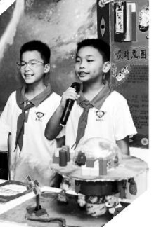 湖南省長沙市天心區(qū)紅衛(wèi)小學(xué)學(xué)生在STEAM夢(mèng)想空間站展示學(xué)習(xí)成果。 學(xué)校供圖