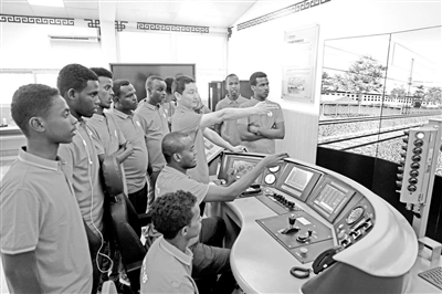 吉布提魯班工坊師生在中方教師的指導(dǎo)下學(xué)習(xí)機(jī)車駕駛。資料圖片