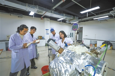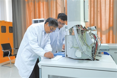 在河南理工大學(xué)“河南省非常規(guī)能源地質(zhì)與開發(fā)國(guó)際聯(lián)合實(shí)驗(yàn)室”,該校教授曹運(yùn)興(左)手把手地指導(dǎo)學(xué)生制作掃描電鏡實(shí)驗(yàn)樣品。