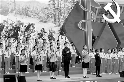 山東濰坊昌邑市第一實(shí)驗(yàn)小學(xué)學(xué)生獻(xiàn)禮黨的生日,朗誦紅色經(jīng)典詩(shī)文。資料圖片