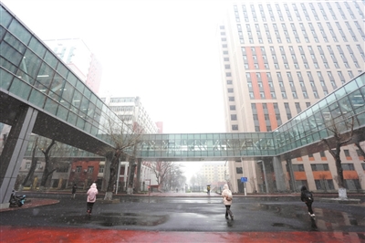 11月26日,學生在哈爾濱工業(yè)大學暖廊內(nèi)穿行。