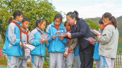 11月28日,在貴州省銅仁市玉屏侗族自治縣第四小學(xué),檢察官向?qū)W生普及憲法知識(shí)。當(dāng)天,玉屏縣人民檢察院組織檢察官走進(jìn)第四小學(xué),開(kāi)展“憲法知識(shí)進(jìn)校園”活動(dòng),開(kāi)設(shè)憲法主題教育課,普及憲法知識(shí)。胡攀學(xué) 攝