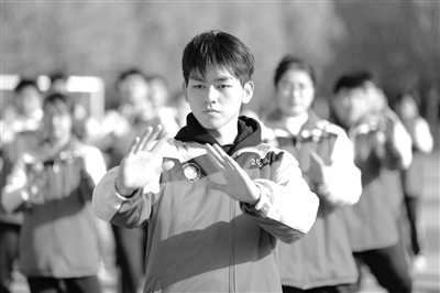 11月27日,河南省焦作市溫縣一中高二學(xué)生在體育課上練習(xí)太極拳。溫縣是太極拳發(fā)源地,該縣自2001年起將太極拳引進(jìn)校園,通過編寫太極拳教材、開設(shè)太極拳課程、大課間練習(xí)太極拳、定期舉辦師生太極拳比賽等活動(dòng),推廣普及太極拳,傳承太極文化。目前,該縣中小學(xué)有5萬(wàn)余名學(xué)生練習(xí)太極拳,習(xí)拳健身成了當(dāng)?shù)匦@里的亮麗風(fēng)景線。
