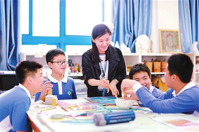 廣東省深圳市教師戴秋敏在給學(xué)生上美術(shù)模塊課程。龍崗區(qū)教育局供圖