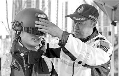 河北省秦皇島市公安局交警支隊民警引導燕山大學學生體驗智能頭盔。在第十三個全國交通安全日來臨之際,該交警支隊聯(lián)合燕山大學開展“文明交通 攜手共創(chuàng)”活動?;顒咏M織部分民警走進校園,通過交通安全知識講座、趣味交通安全游戲互動、體驗酒精測試等方式,為大學生普及交通安全相關知識,增強學生的交通安全意識。