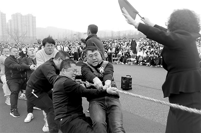 遼寧省莊河市高級(jí)中學(xué)教師在進(jìn)行拔河比賽。 學(xué)校供圖