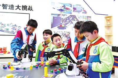 12月6日,在山東省日照市金海岸小學,學生在進行航天英雄挑戰(zhàn)賽訓練。近年來,山東省日照市東港區(qū)積極推進中小學人工智能教育,實行“普及+提高”的人工智能課程體系,以聯(lián)盟結對、成立共同體等形式,推動優(yōu)秀課程資源共建共享,目前,已建成中小學人工智能實驗室37所。