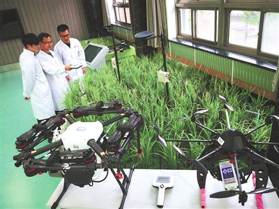 南京農業(yè)大學智慧農業(yè)創(chuàng)新團隊應用自主開發(fā)的作物生長監(jiān)測診斷儀監(jiān)測作物生長狀況。學校供圖