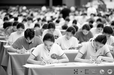 第十四屆全國高等學校民航服務技能大賽選手參加民航知識與英語比賽。