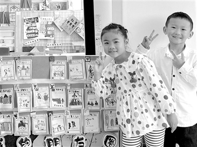 幼兒與墻面合影。 幼兒園供圖