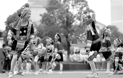 近日,江西省吉安市泰和縣第三實(shí)驗(yàn)小學(xué)學(xué)生身著民族服飾,表演民族舞蹈。近年來,泰和縣第三實(shí)驗(yàn)小學(xué)積極推進(jìn)素質(zhì)教育,開展民族舞蹈進(jìn)校園大課間活動,豐富學(xué)生的校園文化生活。