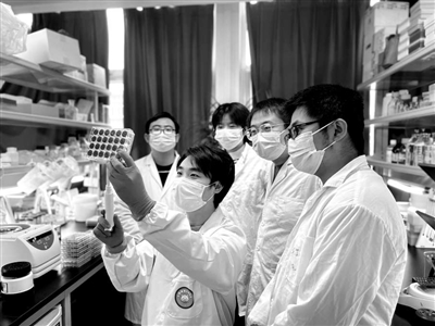 圖①:病毒學(xué)國(guó)家重點(diǎn)實(shí)驗(yàn)室、武漢大學(xué)生命科學(xué)學(xué)院教授嚴(yán)歡(左二)指導(dǎo)學(xué)生做實(shí)驗(yàn)。 肖珊 供圖