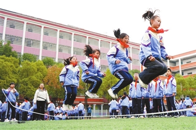 圖⑦ 江西省宜春市上高縣第四小學(xué)的孩子們利用課間十分鐘參加跳繩活動。 陳旗海 攝