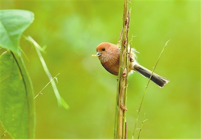 棕頭鴉雀在竹筍上找到一條小蟲子肖輝躍 攝