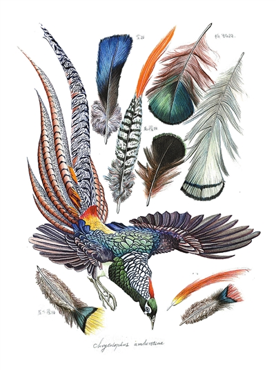 《白腹錦雞圖》 田震瓊(花老道)繪 選自《回歸生活的博物繪》插圖
