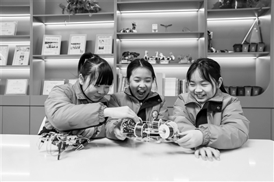 1月9日,江西省瑞昌市實(shí)驗(yàn)小學(xué)學(xué)生在創(chuàng)客機(jī)器人實(shí)驗(yàn)室學(xué)習(xí),體驗(yàn)科技產(chǎn)品。該校通過建設(shè)創(chuàng)客實(shí)驗(yàn)室,開設(shè)人工智能課程,培養(yǎng)和鍛煉學(xué)生的創(chuàng)新思維與實(shí)踐能力,讓越來(lái)越多的學(xué)生通過豐富多彩的科技活動(dòng)成為“創(chuàng)客小達(dá)人”。魏東升 攝