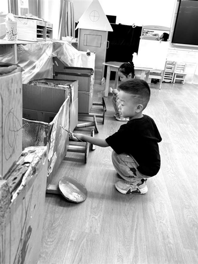 幼兒共同制作一日生活“小火車”。資料圖片