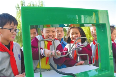 霍邱縣城關(guān)鎮(zhèn)中心小學(xué)學(xué)生在科技節(jié)上鍛煉手眼協(xié)調(diào)能力。黎志 攝