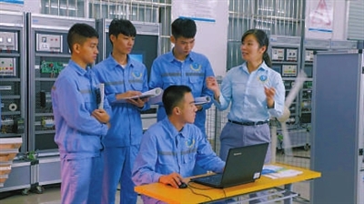 ②廣西電力職業(yè)技術學院師生在上實訓課。