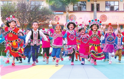 ①牟定縣江坡鎮(zhèn)的孩子們在新建成的中心幼兒園。