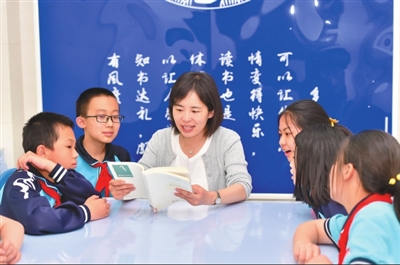 ②昆明市中華小學(xué)教師帶領(lǐng)學(xué)生一起閱讀。