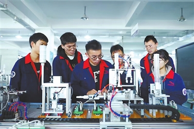 ③云南機(jī)電職業(yè)技術(shù)學(xué)院學(xué)生做機(jī)電一體化項目實(shí)訓(xùn)。 云南省教育廳供圖