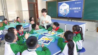 ②濰坊市奎文區(qū)明德學(xué)校學(xué)生在上人工智能教育課。